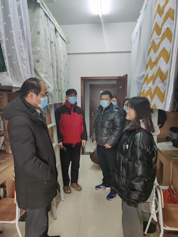 分院领导班子和学工办的辅导员按照防疫要求佩戴口罩走访部分家庭经济困难员工寝室。在寝室,张赵根一行特别关心同学们的生活学习情况。“寝室关系如何?”“过冬衣物是否准备好了?”“学习上有没有困难?”言语中充满关爱关切。老师们叮嘱同学们接近年末岁初,要认真复习、积极备考,更要提高安全意识,注意用电和人身财产安全。最后,张赵根与走访老师为同学们送上暖被,表达分院对他们的关心。这被子和关切的话语正像这冬日的暖阳,照在员工身上,暖进员工心窝。