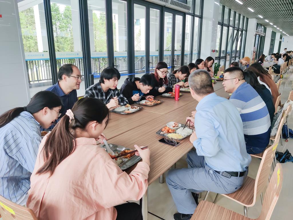 就餐让沟通的气氛格外轻松,老师们亲切地询问同学们的个人情况和生活学习。同学们也把一些平时不敢说、不敢问的讲出来,既有专业学习的疑惑,又有公寓生活的建议,更有人生成长的探讨。老师们认真倾听,结合实际进行解释和答复。饭菜香伴着亲切的笑容和朴实的话语,让这顿午餐更加有滋有味。