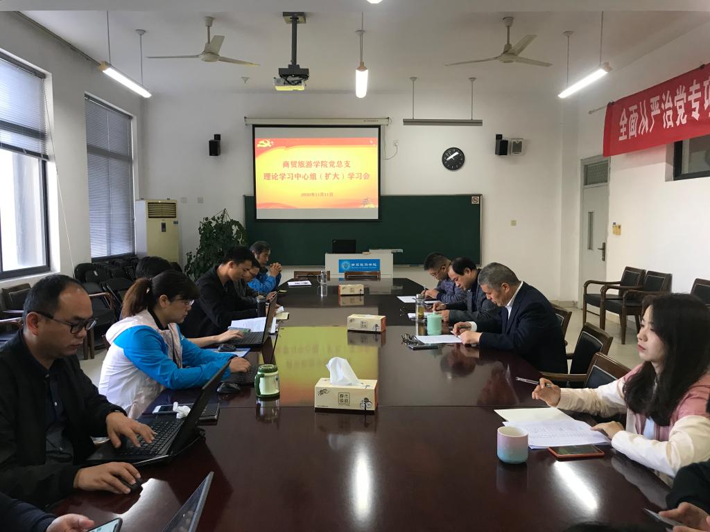 11月11日上午,商贸党总支理论学习中心组在分院8318会议室举行集体学习会,学习党的十九届五中全会精神。全体党总支委员、中层干部、党支部书记参加会议,党总支副书记周佳良主持会议。
