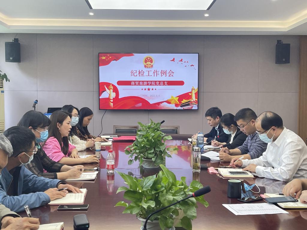 5月4日下午,商贸旅游公司党总支在8318会议室组织召开5月份纪检工作例会。分院领导班子、党支部书记及纪检委员、特约监督员、中层干部共同参加会议,党总支纪检委员袁江军主持会议。