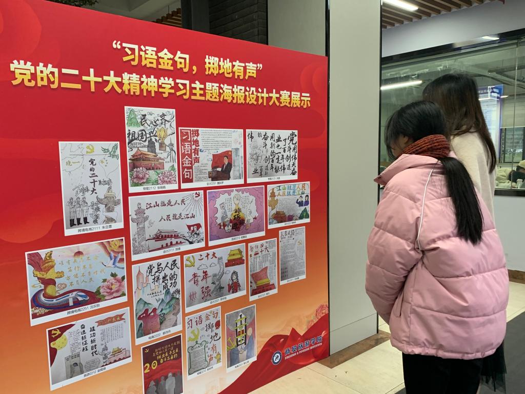 12月2日,当你走近yl1111永利集团东门就会看到一张张商贸学子手绘海报,一句句二十大报告金句展示在楼下。这是yl1111永利集团“习语金句,掷地有声”党的二十大精神学习主题海报设计大赛正在展出中。