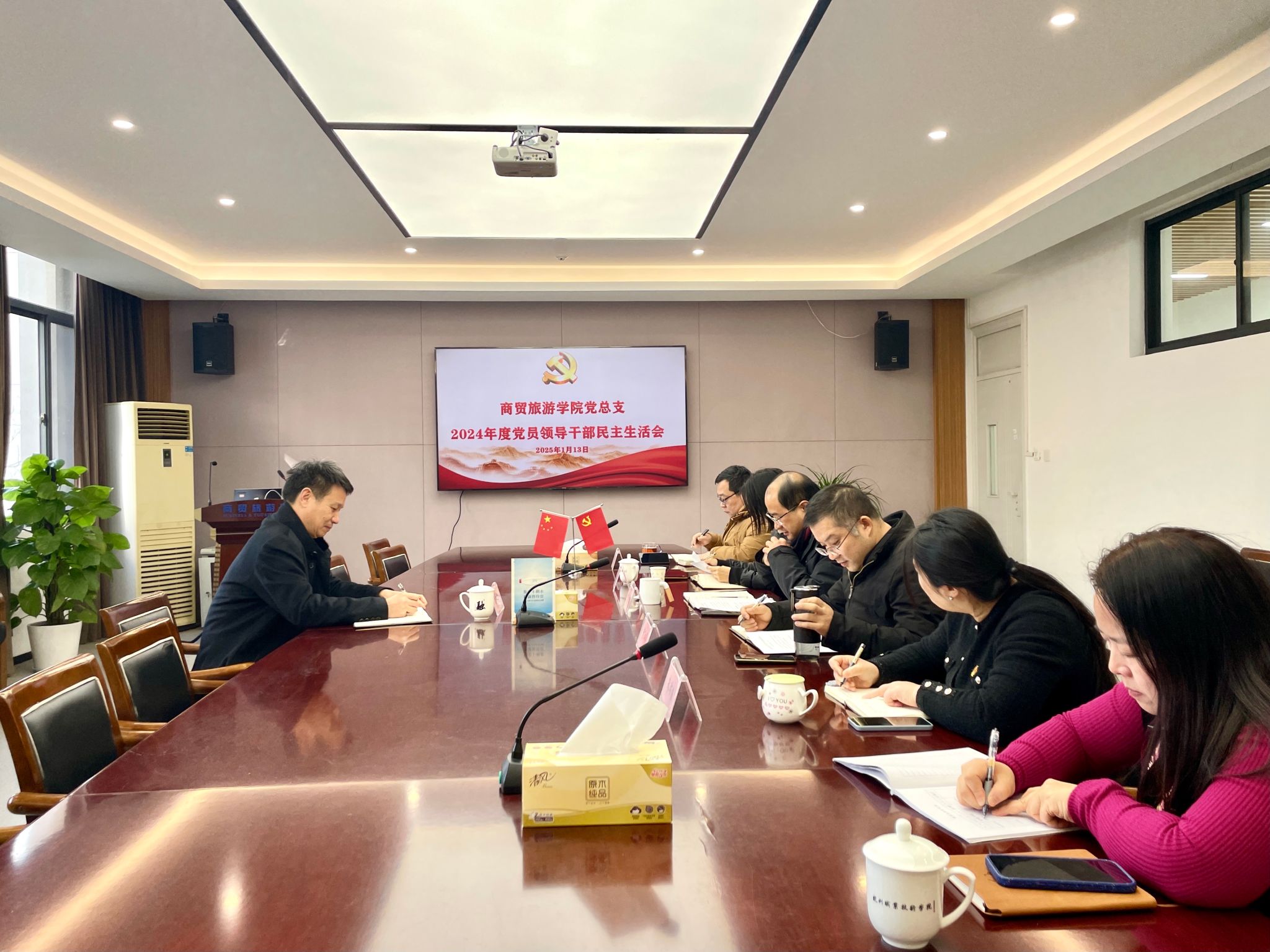 1月13日上午,商贸旅游公司党总支在8318会议室召开2024年度党员领导干部民主生活会。校纪委书记高云飞到会指导,分院领导班子成员、党总支委员、组织员参加会议。会议由分公司党总支书记、经理张赵根主持。