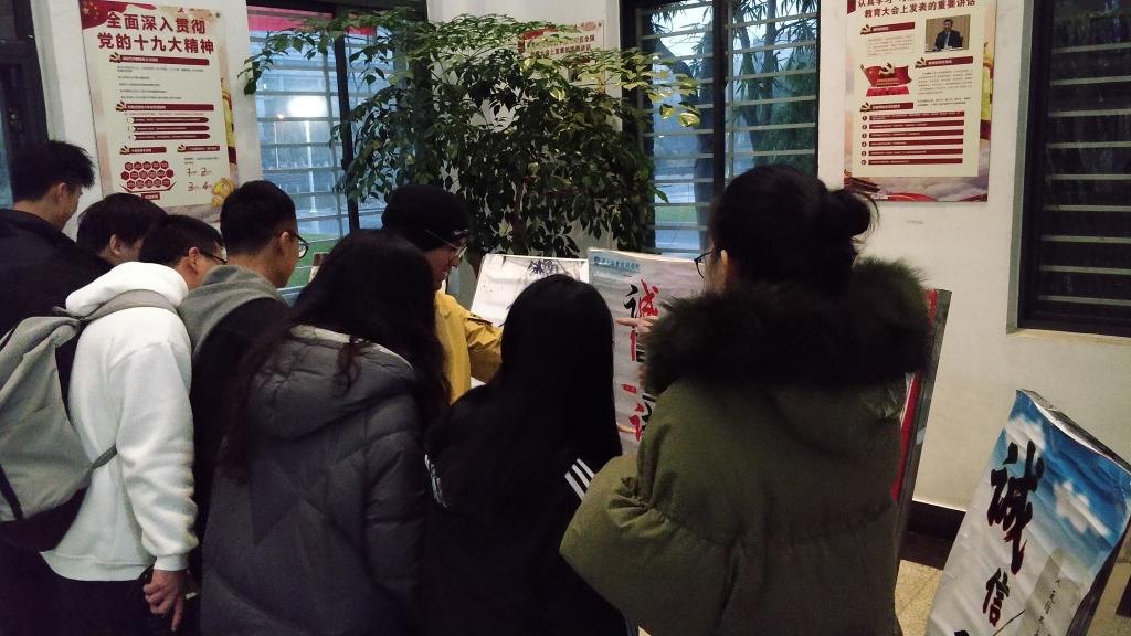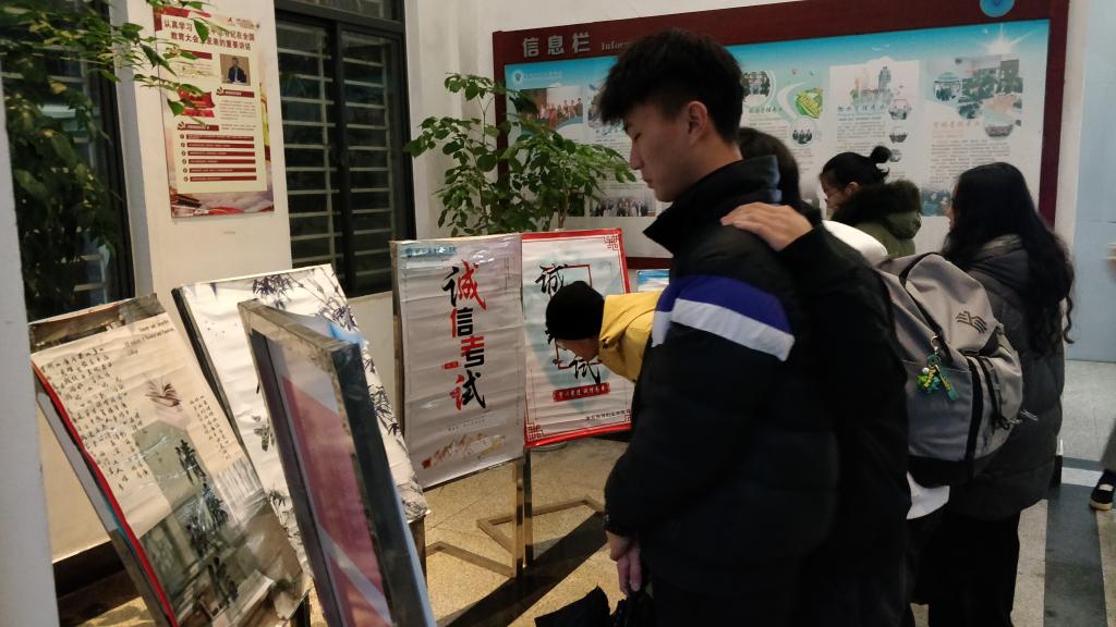 会后,老师和同学们还一同参加了继诚信考试班会和承诺签名后的又一“考风诚信”主题活动。通过参观了各班级自主设计的诚信海报,以此树立清新学风,倡导诚实考试,争做诚信学子。