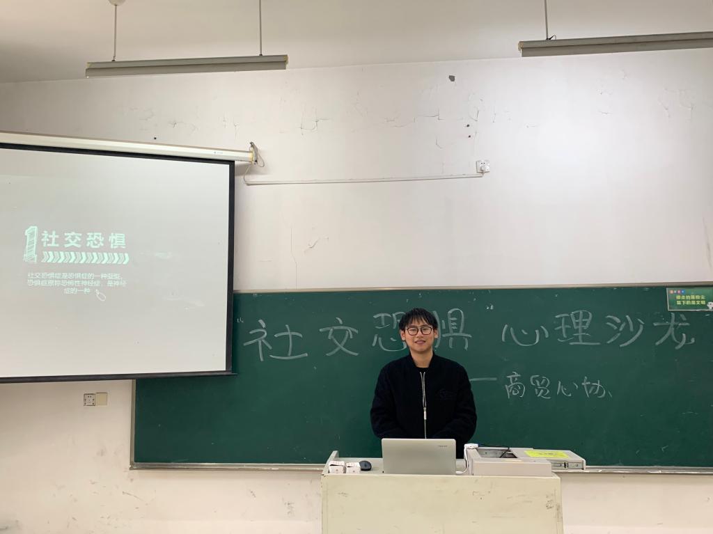 本次心理沙龙由商贸心协协会会长刘炀主要分享。在前期的员工调研发现,人际关系困扰位居员工心理问题之首。所以本次沙龙刘炀以“社交恐惧”为主题,分别从“什么是社交恐惧?”“具体表现”“解决方案”三方面带领心协成员开展讨论与分析。理论讲解、案例分析、小组讨论、总结提升,层层递进的环节,不断推进心协成员对社交恐惧的理解。从了解社交恐惧到体会社交恐惧的表现,再到掌握社交恐惧的解决方法环节,凝重而温馨的氛围使各成员获益匪浅;通过丰富多彩的互动环节,参加者各抒己见,聆听者感同身受,会场气氛热情洋溢。最后沙龙在“社交恐惧”的短片中画上完美句号。