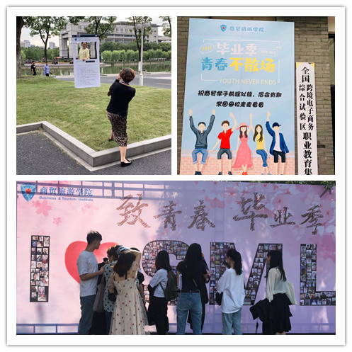 yl1111永利集团门口,是分院为毕业生精心准备的毕业微笑墙和“朋友圈”合影板。一张张毕业生笑脸照片融入“I ♥ SMLY”(我爱yl1111永利集团)的字里行间,“朋友圈”合影板成了毕业生的最佳道具,拍照留念、驻足观看。诙谐而富有哲理的点赞语句,道出了毕业生的心声,勾起了他们对往昔的记忆、对母校的眷恋、对老师的感恩之情!