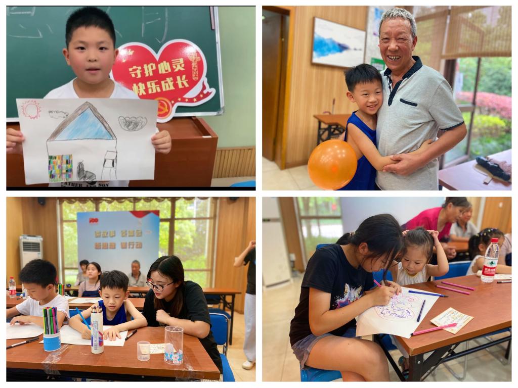 首先,团队成员从家庭感恩层面开展“书信互联”、“亲情小档案”、“绘画心声”、“父母微心愿”等系列活动,培养留守小候鸟们孝敬父母、尊敬师长、关心他人的感恩之心。“书信互联”环节让留守小候鸟们学会理解和感恩父母,抒发内心的真实情感,鼓励其平时积极主动地在信中向父母汇报自己地学习和思想情况,倾述思念之情。“亲情小档案”环节,小候鸟通过制作包含父母的生日、年龄、爱好等信息的贺卡小档案增加对父母的了解和关心程度。“绘画心声”环节中小候鸟们画出了和父母一起的场景,去游乐园、吃大餐、做家务……一幅幅彩色的画展现了孩子们最真挚的感情。“父母微心愿”环节,小候鸟们在星星纸上写下今天愿为父母做的一件小事,叠成星星后做成漂流瓶送给父母,作为亲情的小见证。此外,团队成员还从社会感恩层面开展“垃圾分类大作战”活动,在普及垃圾分类的意义、垃圾种类等基础知识后,通过抢答的形式提高孩子们垃圾分类的能力,播撒爱心种子,培育孩子感恩回报社会的崇高道德风尚。