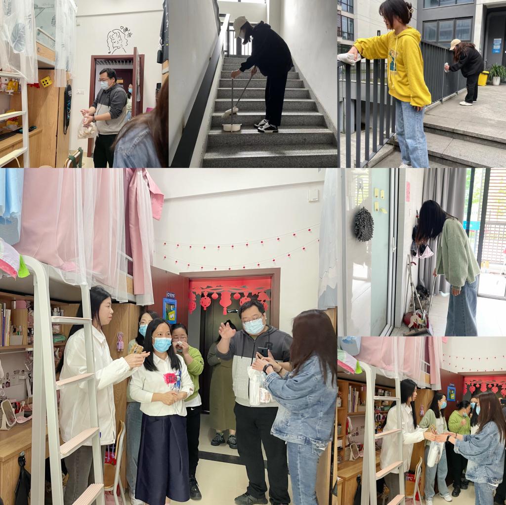当天,商贸全体辅导员走进员工公寓,走访部分寝室,分发防疫物资,与同学们一起清扫地面、清运垃圾、摆放物品。在活动过程中,老师与同学们边劳动边交流,引导员工增强卫生健康意识,提高员工疫情防控意识,督促大家共同维护寝室环境,营造干净整洁、健康有序的良好氛围。