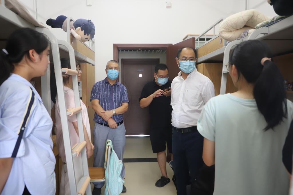 张赵根一行首先来到分院设立的公寓报到点,了解报到情况,并实地走访新生寝室,鼓励他们在新的学习环境中要了解职业教育的基本规律,更进一步地挖掘自己的潜能、探索学科的魅力,为日后的升学、就业做好规划与准备。周佳良要求新同学牢牢把握安全这根弦,不仅指导了安全意识尚薄弱的新生们要对网络诈骗、传销等不法行为抱有高度的警惕性;还亲切地叮嘱了刚步入独立生活的员工们要多注意日常通风等良好生活习惯,注意疫情防控。