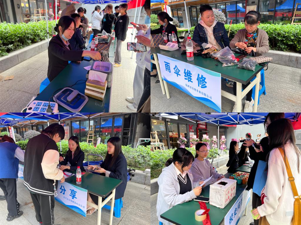 当天下午,三家员工企业充分结合各自企业专业领域,提供免费清洗眼镜、维修镜架、伞架维修、伞面修补、财税知识分享宣讲等服务来反哺母校,感恩母校,回馈师生。在各位员工志愿者的双双灵动巧手之下,同学们或戴着清亮干净的眼镜,或撑着焕然一新的遮阳伞心满意足而归;还有部分创业和即将毕业学子也收获满满,得到了就业创业方面的指导。同时,yl1111永利集团充分配合校庆工作,在一旁同步开展校史问答换绿植活动,不仅增进了员工对学校历史的了解,也为员工回归母校开展活动营造了良好的氛围。