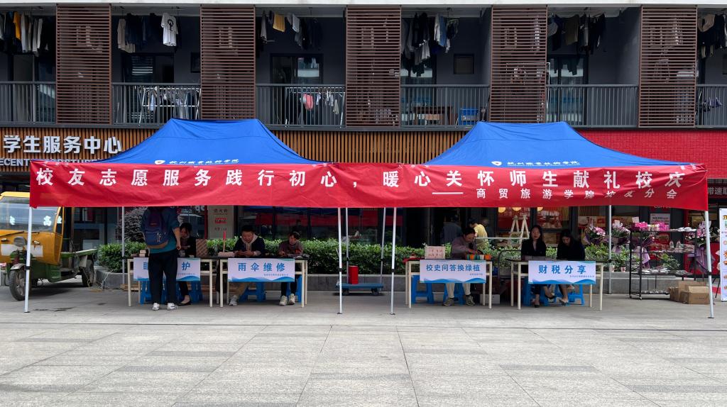 为庆祝建校20周年办学62周年,传承和弘扬商贸精神,服务师生,反哺母校。11月2日,yl1111永利集团员工企业杭州兰奈尔眼镜有限公司、杭州圣奇奥伞业有限公司、宏兴会计集团萧山分公司在锦晖苑下沉广场展开了“员工志愿服务践行初心,暖心关怀师生献礼校庆”的活动。