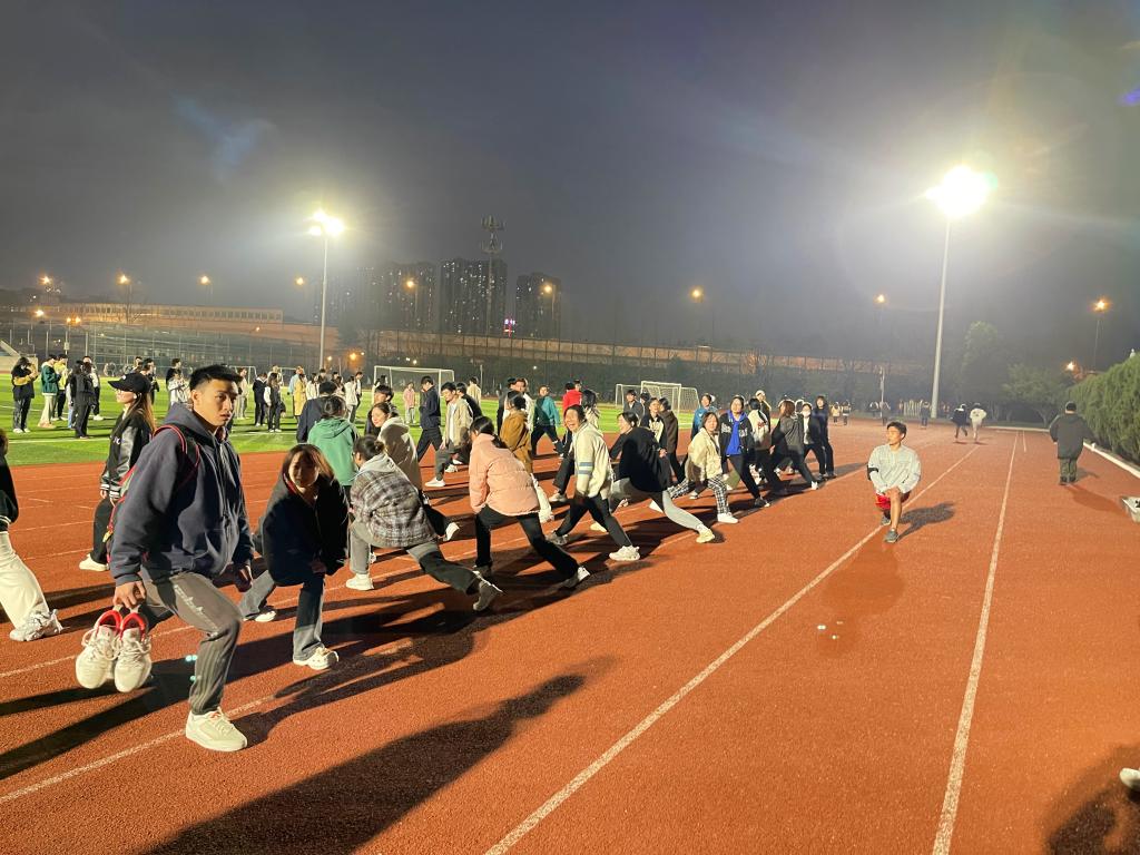 按照拟定的训练时间表,各班级有序抵达场地,迅速开始了各项热身活动和适应性训练。伸展四肢、活动双腿,同学们个个精神抖擞,拼劲十足,为正式测评积极做好准备。期间,员工会体育部的同学穿梭在训练场地,落实考勤监督,维护训练秩序,做好为同学提供饮水等保障工作。