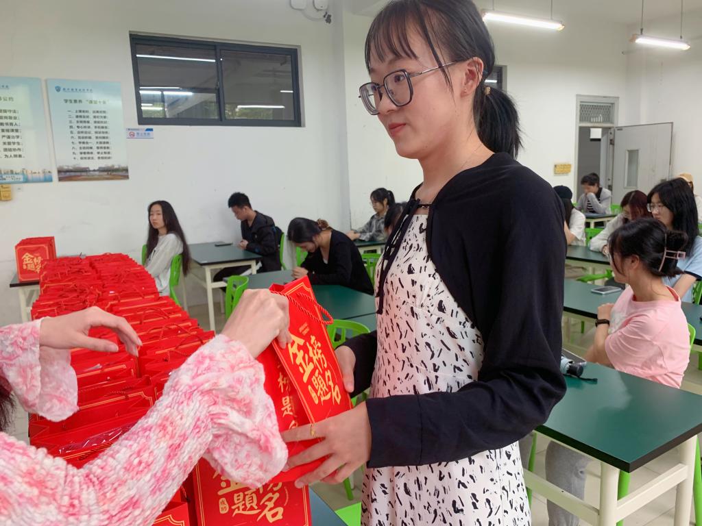 本次活动为受资助对象考生发放“专升本爱心加油包”,含有满载激励祝福的专属定制书签、签字笔、涂卡套装、套尺四件宝以及医用口罩、酒精湿巾等防护物资。李剑桥和圆心舍志愿者为考生们派发助力加油包,勉励他们坚定目标、调整心态、鼓舞斗志,提醒同学们在这特殊时期学习之余要积极锻炼身体、劳逸结合、注意饮食卫生,鼓励同学们要珍惜时间、坚定信念、诚信考试,做好最后的冲刺。“感谢学院送来特别的关怀和备考礼包,让我原本紧张的心情放松了许多。”一名来自智慧旅游专业的考生说道。