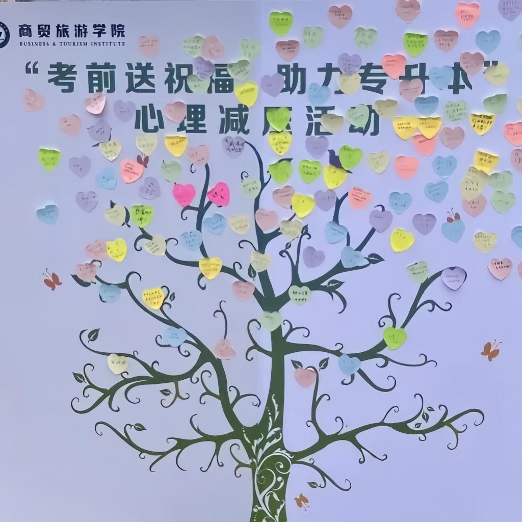 活动现场准备了许多心型便利贴,同学们在上面写下了真挚祝福和美好愿景,并张贴在心愿树上。通过送上祝福语的形式,来表达爱,传递爱,不但可以使自己心情舒畅,还能够让得到祝福的人感受到的温暖和力量。