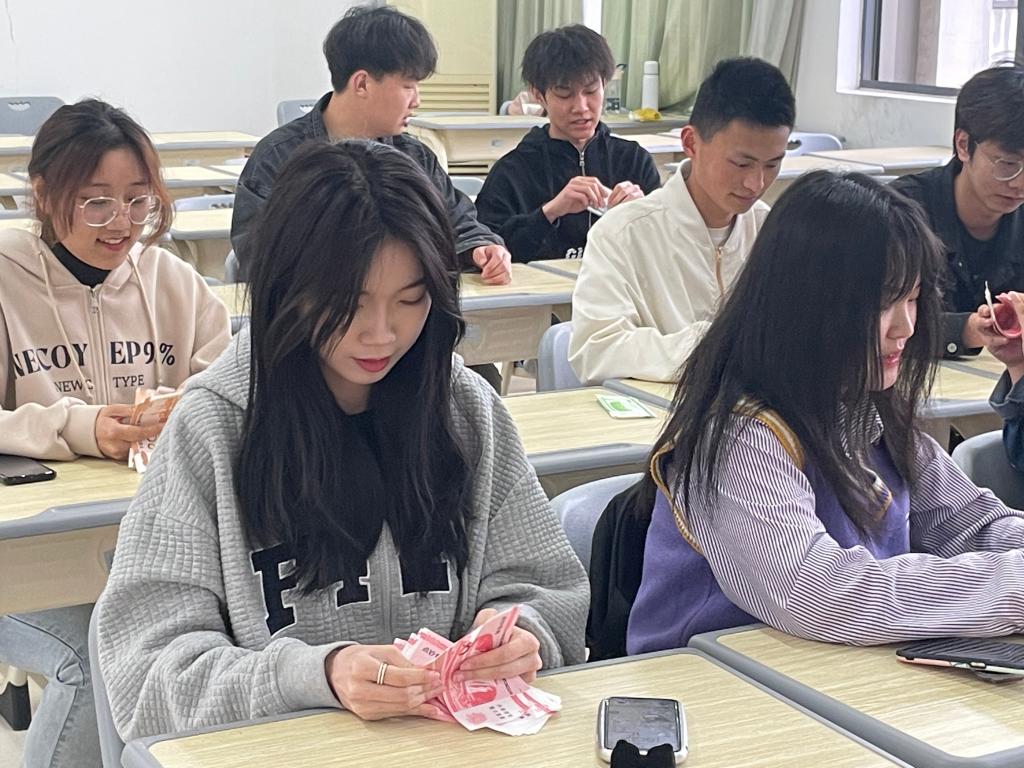 比赛前夕,继同学们依次签到入座,会计协会成员便从会计点钞的相关知识谈起,由浅入深,分点、分细、分全,向大家传授点钞这一极具灵敏性考验的方法与技巧,留足时间携力带领大家探索点钞文化的魅力与乐趣,为同学们接下来的正式比赛铺下“学思用贯通”的基石。经由一轮体验后,比赛在30秒的点钞规则下紧张展开,非会计专业的同学虽是初次体验点钞技能,但在技巧输送下,仍然做到从容不迫、有条不紊,摆动手指的音符在钞纸间来回跳动,尽情享受点钞文化中所蕴藏的亚运新精神,以充分的点钞技巧和饱满的精气神使比赛完美落下帷幕。