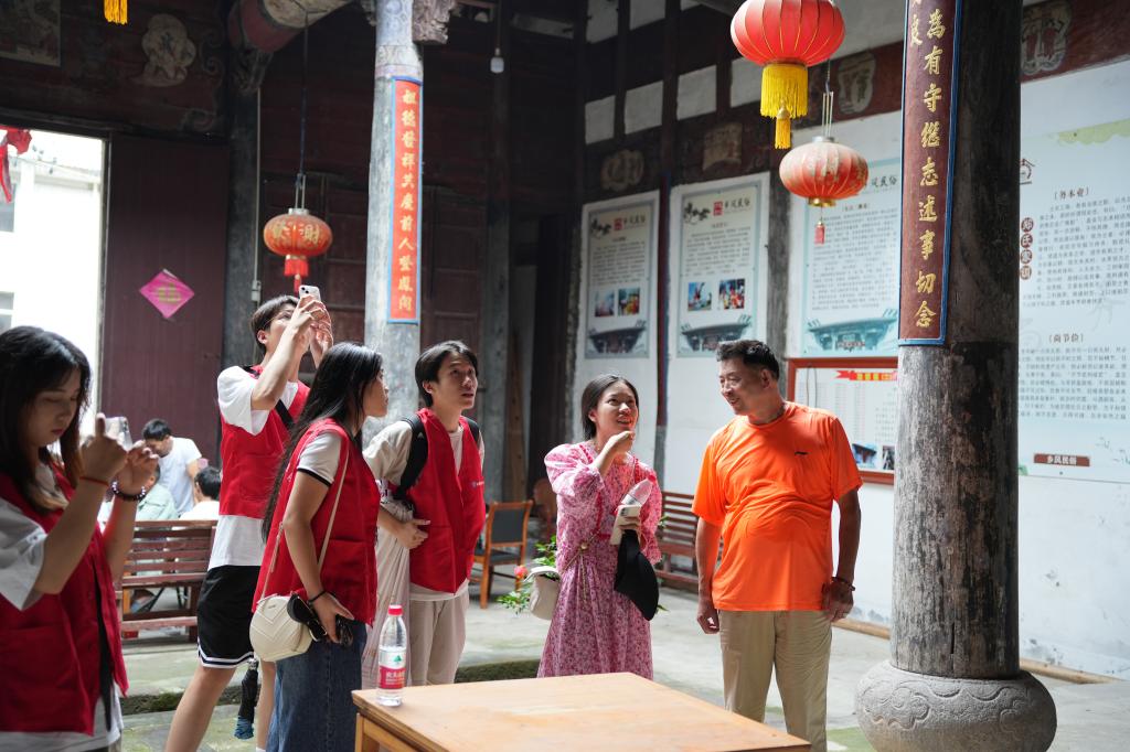 6月30日,千岛湖镇团委副书记张钱雷和汪宅村党委副书记郑国华带领团队沉浸式参观红色党员之家、汪宅村文化礼堂以及东汉村创始人郑氏夫妇的祠堂。郑书记向同学们讲述汪宅东汉村的起源和发展历程,演唱由其亲自作词的东汉村歌,余音缭绕的歌谣不仅承载着村民的乡土记忆和文化认同,也记录着乡村变迁和红色振兴的轨迹,抒发着村民对美好生活的向往和热爱。村民向我们讲述红色家风家训故事,谈革命、聊家风,重忆峥嵘岁月,展望新征繁华。每一段刻在村民心底的故事,是家风,亦是他们对乡风民俗的重视及传承。