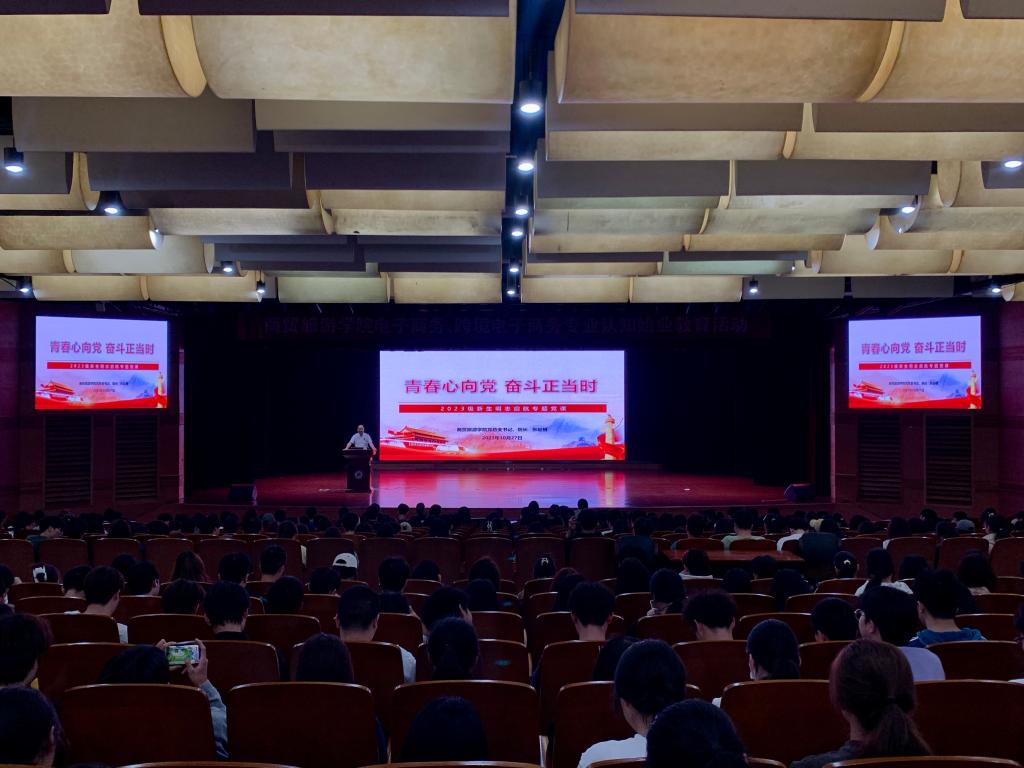 在课上,张赵根以“青春心向党、奋斗正当时”为主题,以“百年党史”“大学之道”“奋斗青春”“时代重任”等关键词回答了“四个问题”,深入浅出地回顾了党的百年历史征程和辉煌成就,向同学们阐述了中国共产党成为百年大党的宝贵经验,讲解了学校和分院的发展沿革和办学成就。他号召全体新生在党的历史中汲取前行力量,坚定前进信心,要立大志、明大德、成大才、担大任,勤于探索、勇于实践,鼓励同学们在有限的大学时光中创造无限可能,涵养“阳光、自信、睿智、大气”的商贸学子气质,在实现中华民族伟大复兴的接力跑中跑出属于商贸学子的精彩。近一小时的专题党课不仅是一次务实的党课教育,也是一次生动的校史院情教育,更是奋斗青春的主题教育,让同学们受益匪浅。随后,周佳良围绕“让爱成长”这一主题,以“你眼中的大学”“我想在大学收获什么”开篇,为大一新生明确奋斗目标,指引前行方向。从适应大学的方式方法,到大学应具备的能力,无不体现着对新生们的谆谆教诲和殷切期望。他强调要自觉培养以“礼”为核心的社会公德、以“诚”为核心的职业道德、以“爱”为核心的家庭美德,珍惜生命、珍惜时间、珍惜友情,以梦为马、不负韶华。