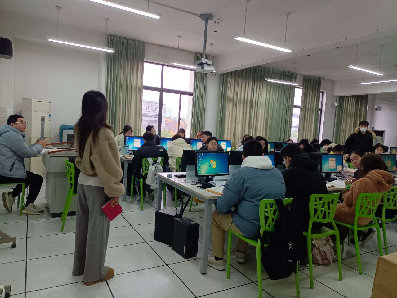 部分辅导员们在开课前5分钟就来到教室,点名点到,核对员工名单,查看请假手续,并第一时间联系班主任了解员工情况。部分辅导员则在教学楼下,劝导员工有序停放自行车,用完早餐再进教室等不文明行为。