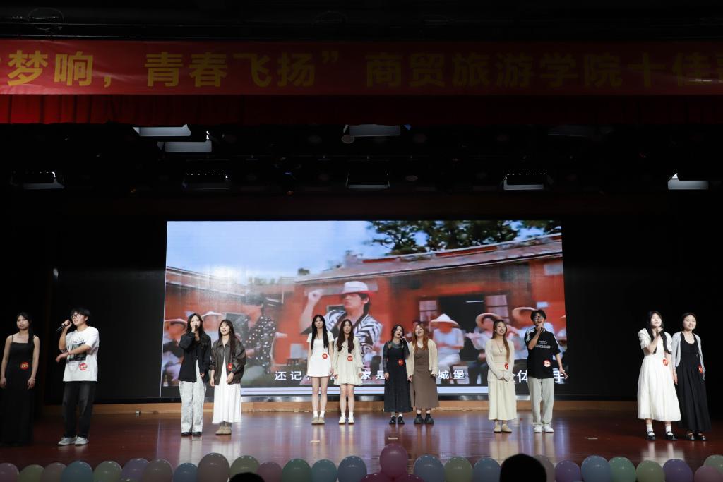 经过海选和复赛选拔,12名选手脱颖而出,来到决赛现场继续角逐。选手们将情感融入歌声,或激烈炽热、或温柔欢快、或空灵婉转,现场观众时时爆发出热烈的掌声。商贸艺术团舞蹈队带来的《sheesh》和动漫社的《星之轨迹》cosplay走秀,进一步将现场气氛推向高潮。最后,十二名选手共同带来歌曲《稻香》,现场观众一起跟着哼唱,将大赛氛围烘托到极致。经过激烈的较量,戴丹丹、陈瑞希、李嘉诚三位同学荣获十佳歌手冠、亚、季军。