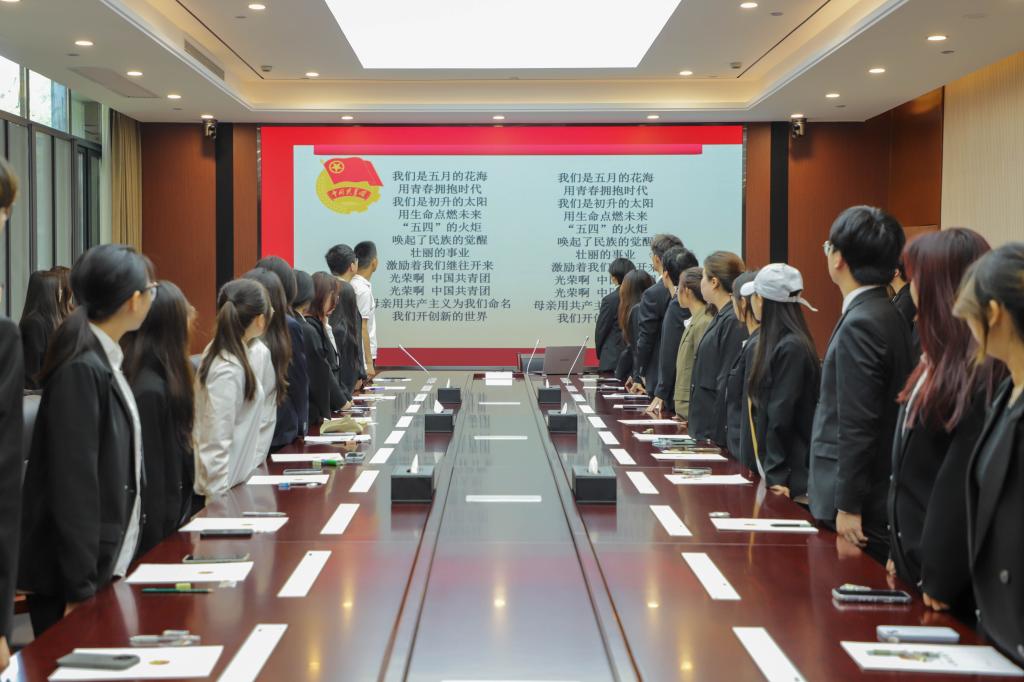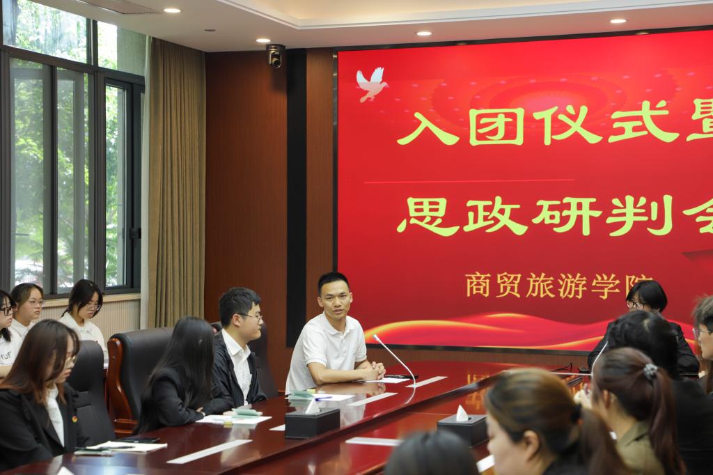5月22日下午,商贸团总支在行政楼129会议室举行新团员入团仪式暨思政研判会。团总支副书记李志强、组织部员工干部以及53名新发展团员参与本次活动。