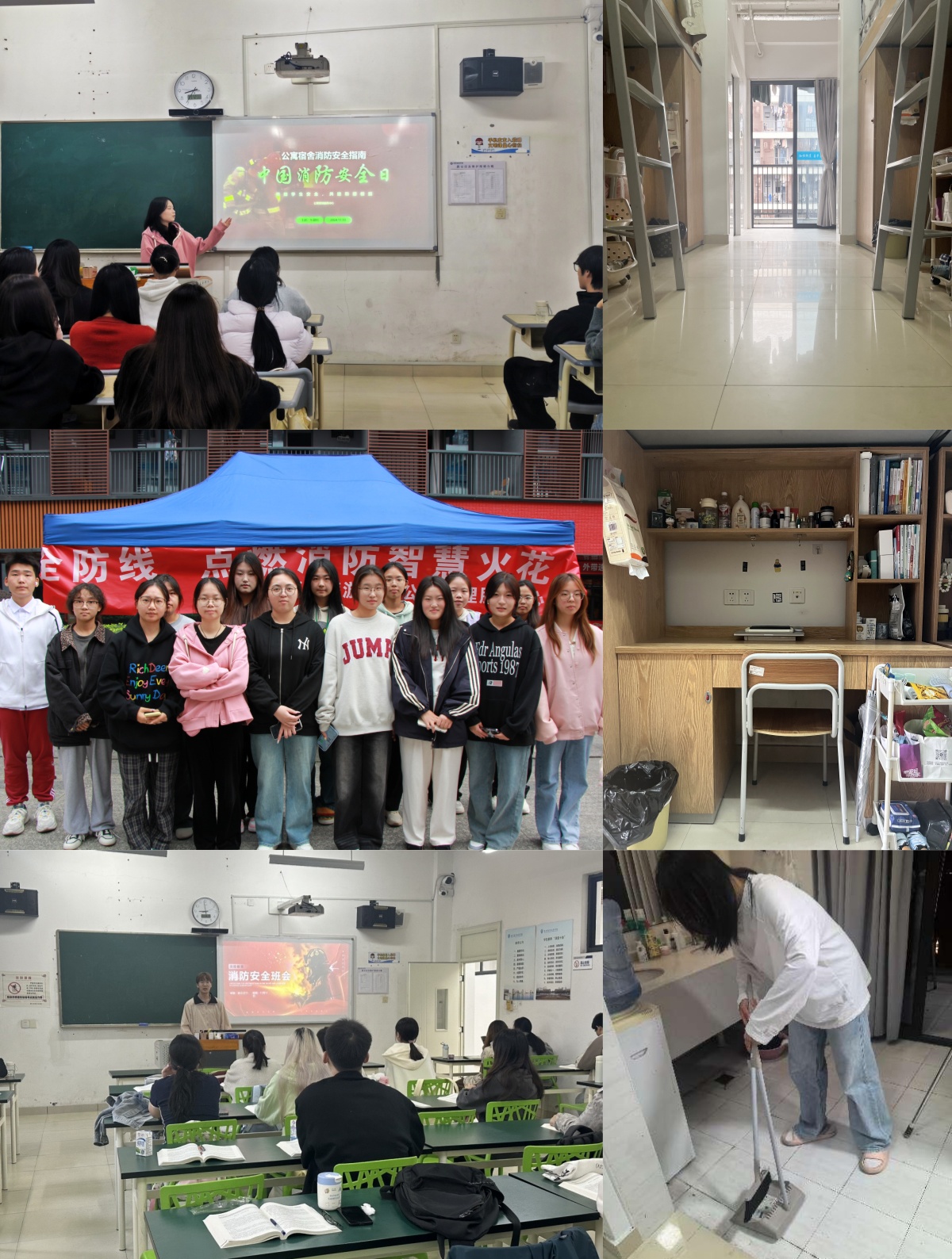 各班级第一时间召开了消防安全主题班会,通过观看消防安全视频、分享案例、讨论知识等方式,深入了解消防安全的重要性及应对措施。各寝室借“文明寝室”评比之机,开展了大扫除活动。辅导员深入员工寝室,认真检查用电安全、消防通道畅通情况以及易燃易爆物品的存放等关键环节,排除了潜在隐患。