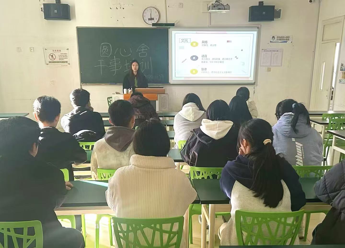 培训内容涵盖了视频剪辑、推文排版、PS图像处理、策划案撰写及通讯稿编撰等关键技能。在培训过程中,采用理论讲解与实操演练相结合的方式,使新干事们迅速掌握了各项技能要点。特别是在视频剪辑和PS图像处理环节,新干事们表现出了极高的学习热情和创造力,作品成果令人眼前一亮。此外,通过策划案与通讯稿的撰写指导,新干事们对如何有效地传达信息和组织活动有了更深刻的理解。