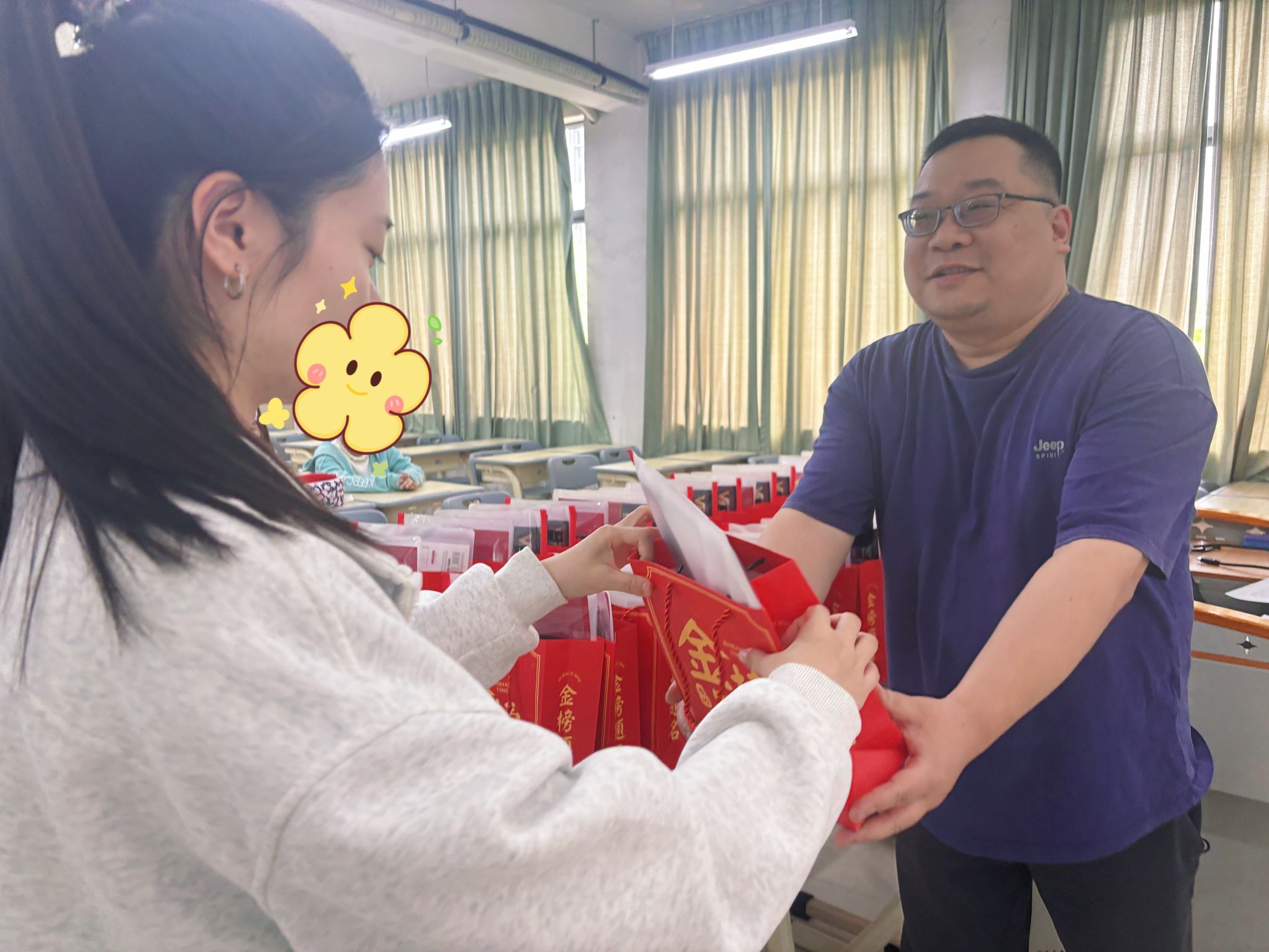 本次活动为家庭经济困难的备考生精心准备了定制书签和印有“金榜题名”祝福语的考务袋,包含套尺、涂卡笔、橡皮、圆规、湿纸巾等考试必备品。李剑桥叮嘱同学们:一要诚信立身,端正考风;二要科学备考,张弛有度;三要心理调适,轻装上阵;四要双线并行,未雨绸缪。王晓磊将精心准备的助考礼包送到考生手中,亲切询问同学们的备考情况,并鼓励大家保持良好心态,以最饱满的状态参加考试。他的暖心话语让在场学子备受鼓舞。收到礼包的同学们纷纷表示感谢,活动现场洋溢着温馨的氛围。