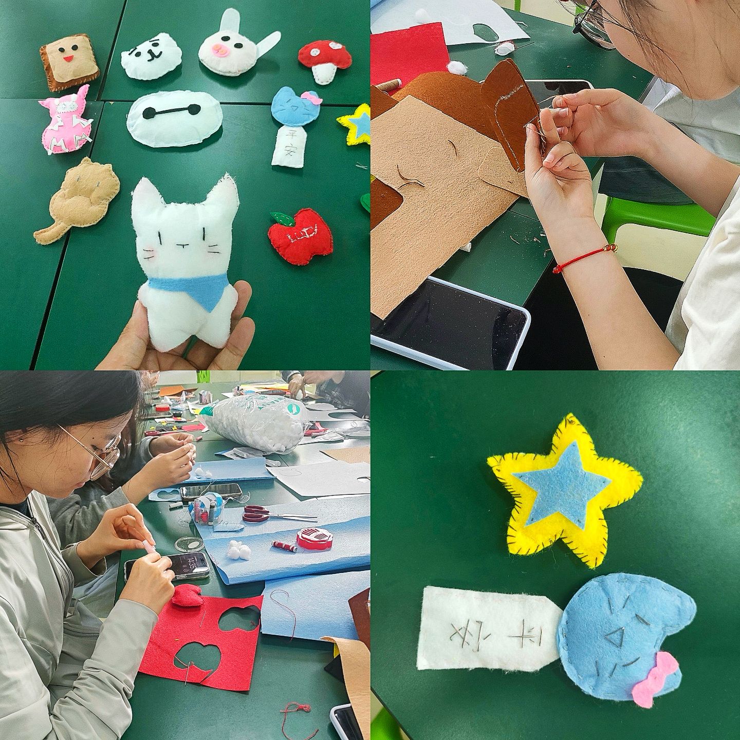 活动现场,彩色羊毛与专业工具整齐排列,活动负责人详细讲解戳毡技法与造型要点。在轻松氛围中,同学们将对师长的敬意、同窗的情谊、自我的期许融入创作,指尖翻飞间,大白、星星、平安符等作品逐渐成型。“这件‘知识树’胸针要送给我的班主任,叶片上的脉络记录着每次专业指导的收获。”一位员工向大家展示作品。活动现场弥漫着专注而温暖的氛围,经过两小时的创作,同学们感受到手工艺的独特魅力。