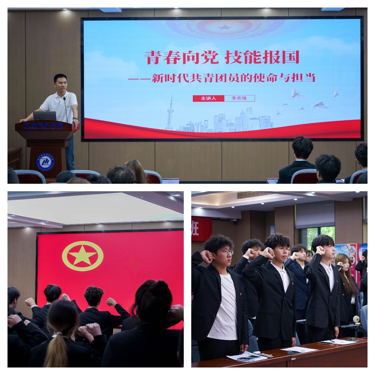 李志强老师向新团员致以热烈祝贺,同时以“青春向党 技能报国——新时代共青团员的使命与担当”为题上了一堂生动团课,并对团员们提出了四点期望:一是传承红色基因,坚定理想信念;二是练就过硬技能,服务创新发展;三是扎根校园实践,展现青春担当;四是勇担时代重任,争做有为青年。入团仪式之后,李志强老师和同学们开展座谈,对新发展团员们关心的学习、生活和思想问题进行深入交流。