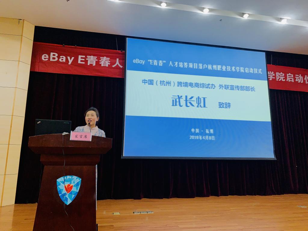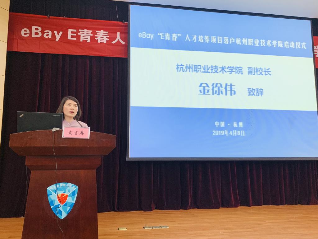 4月8日下午,国际知名电子商务平台eBay“E青春”人才培养项目落户杭州职业技术学院启动仪式在公司行政楼报告厅举行。中国(杭州)跨境电商综试办外联宣传部部长武长虹,eBay中国区业务拓展高级总监潘喆虎、eBay中国江浙大区业务拓展总监周永军、eBay中国区商务拓展经理张昊源,浙江国贸数字科技有限公司(eBay浙江授权服务商)首席运营官韩杰、培训孵化部经理揭月玲,副董事长金徐伟、产学合作处处长谢川,yl1111永利集团经理张赵根、副经理戴凤微、各专业负责人及电商专业300余名师生参加了项目启动仪式。启动仪式由张赵根主持。