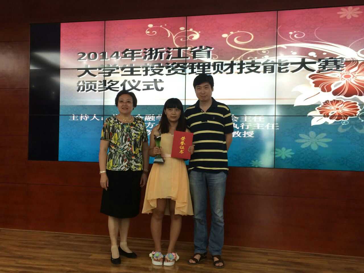 2014年6月6日,第二届浙江省老员工投资理财技能大赛落下帷幕。本届大赛由浙江省教育厅主办,浙江金融职业学院承办。全省6800多名老员工参与了该项赛事。在金都管理学院领导的大力支持和施卓晨、段勇老师的精心指导下,公司会计专业员工黎亚梅以超过50%的收益率位居榜首,最终获得唯一一个特等奖。同时,还有多名位同学获得三等奖和优胜奖。