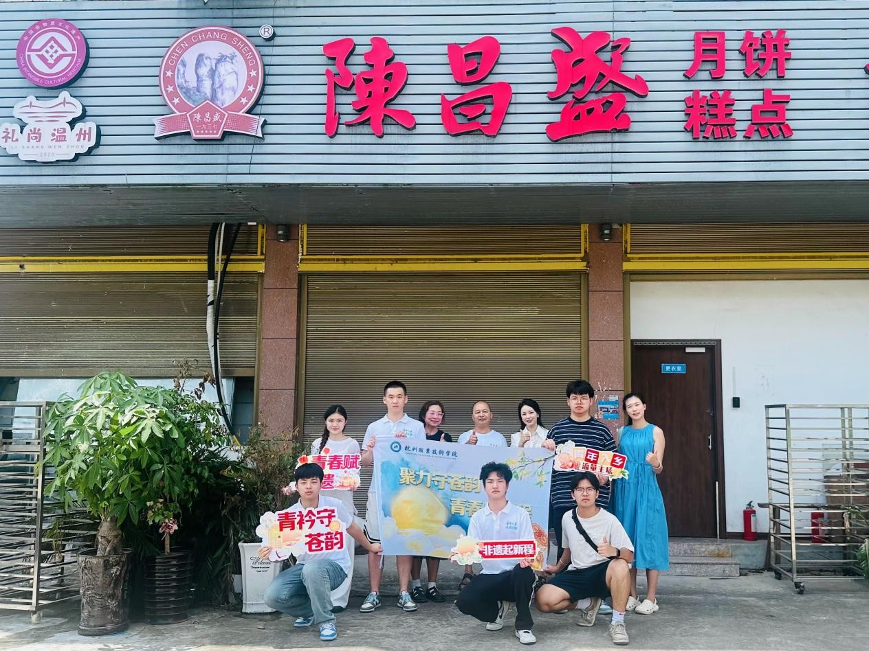 实践期间,队员们走上苍南老街,参与到当地举办的“攻坚行动——夏季招聘市集”活动中,结合老员工视角与品牌故事向宾客介绍产品,推动非遗技艺从“被看见”到“被认同”。更值得一提的是,担任团队负责人的电商专业员工陈泳,正是陈昌盛月饼的第五代传承人,带领团队成员共同策划并完成了一场别开生面的非遗主题直播。