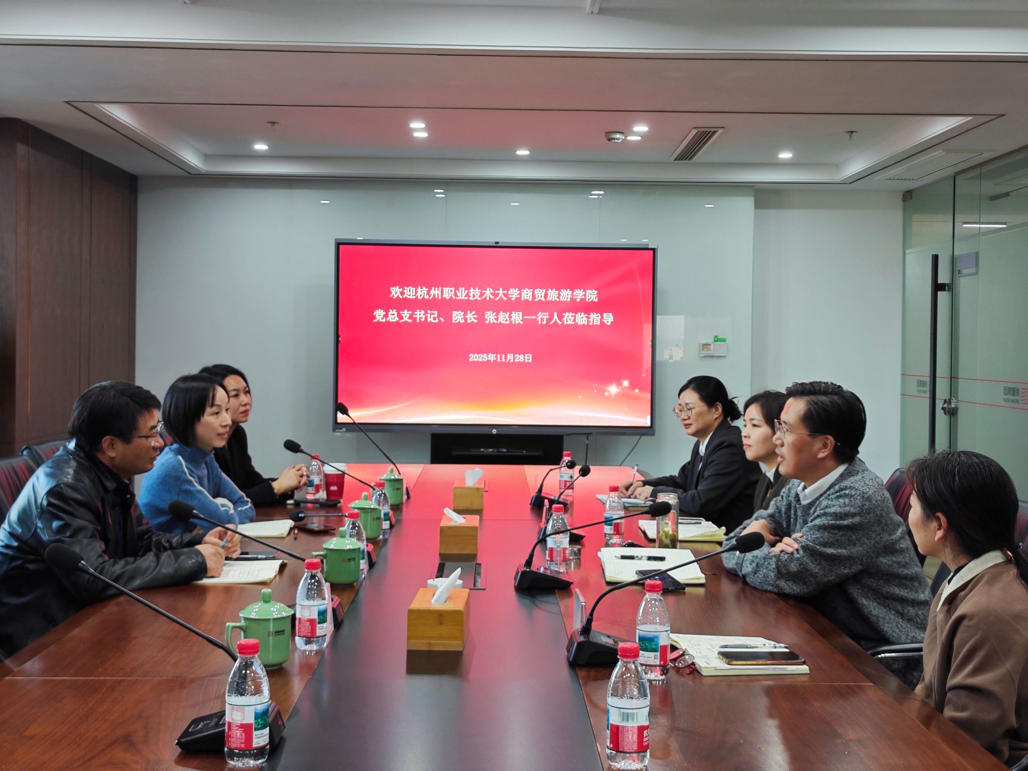 张赵根系统介绍了学院发展历程、办学特色、专业设置及人才培养成果,强调学院坚持以社会需求为导向,培养高素质技术技能人才。他指出,集团业务与学院现代物业管理、旅游管理等专业高度契合,希望以此次交流为起点,建立常态化互动机制,推动双方在人才共育、课程共建、实习就业、项目研发等方面开展全方位合作,实现互利共赢。