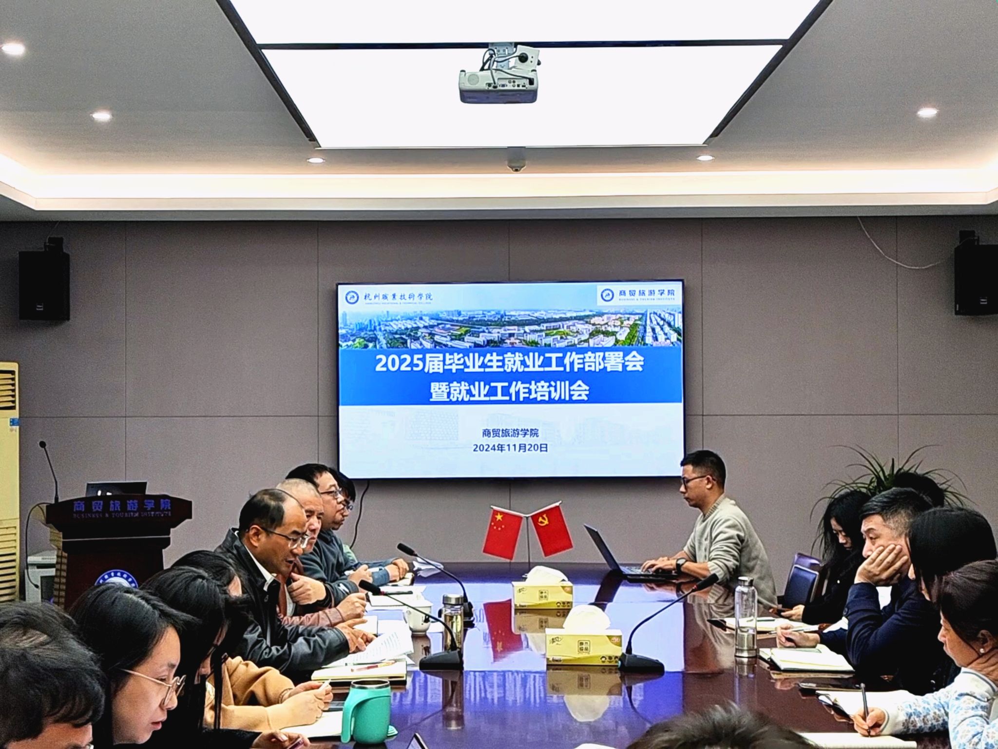 就业是最基本的民生。为深入学习贯彻习近平新时代中国特色社会主义思想、党的二十届三中全会精神和全国教育大会精神,落实落细党中央、国务院关于高校毕业生就业工作的各项决策部署。11月20日下午,yl1111永利集团在8318会议室召开2025届毕业生就业工作部署会,党总支书记、经理张赵根,党总支副书记周佳良,三办主任,专业负责人,专业副主任、毕业班班主任及相关辅导员参加会议。