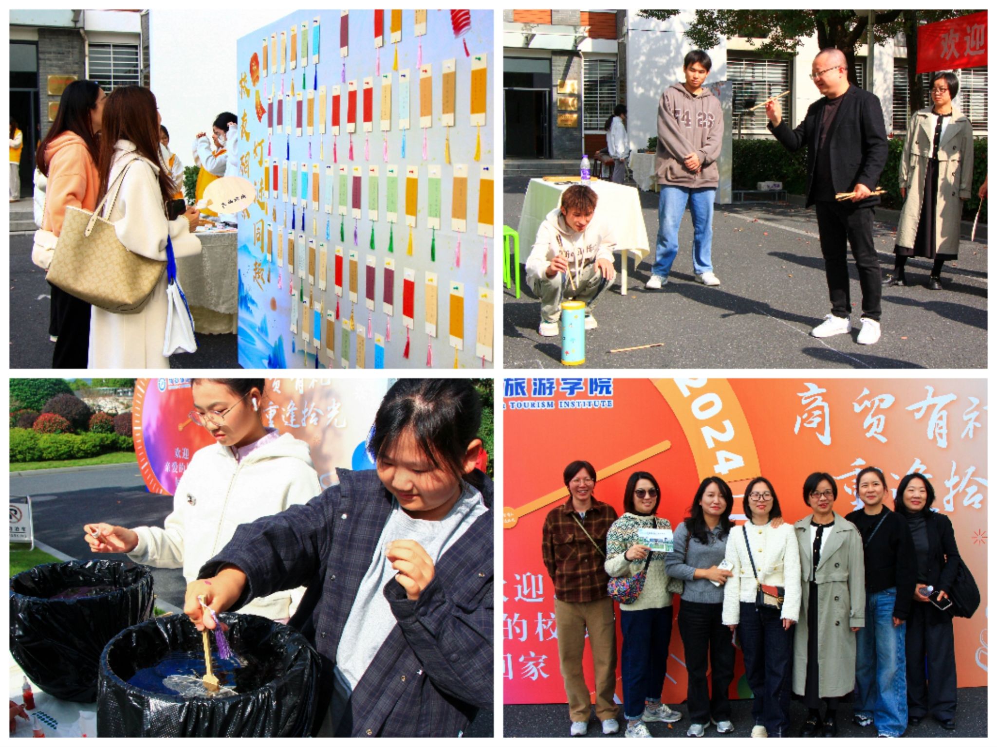 紧接着,员工们欢聚于商贸8号楼前厅,共同参与了一场“非遗”茶叙活动。他们品味着宋韵的雅致,回忆着在杭职院的青春故事,分享着工作成长的感悟与经验,共同畅想着学院未来更加绚丽而灿烂的画卷。雅韵流芳,做漆扇、猜灯谜、投壶等丰富多彩的非遗宋韵活动让众人恣肆欢情,仿佛时光倒流,回到了那个意气风发的少年时代,重新领略青春美好。而后,众人在古筝奏响声中,共同聚集在时光邮局站点,写下了一张张时光之笺。这些笺中或是对未来图景的展望,或是对母校的深深祝福,抑或是给予师生的赠言。它们最终都将被封存在时光邮局胶囊中,等待下一个时间的开启。而这些祝福希望之笺就像是员工与母校之间坚韧的情感丝线,长久维系着双方的紧密联系,成为一份永不落幕、历久弥新的珍贵羁绊。