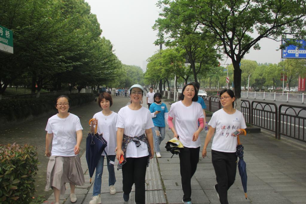本次毅行活动以商贸旅游教学楼门口为起点,去往消防公园绕行一周,之后进入学校操场跑道进行各教科室拔河比赛暨师生趣味运动会。活动伊始,分院教师和大一各班员工代表,着统一洁净的T恤,早早到指定地点集合。在姜萌书记的指挥下,大家迈着矫健的步伐,一队队有序地走出校门,开启了快乐毅行活动。初夏时节,消防公园成片的杜鹃花鲜红斗艳,大片草坪景色怡人,伴着花红柳绿,师生们结伴同行,感受运动锻炼带来的快乐。