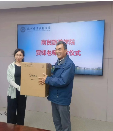 教师代表分别为贾老师送上鲜花和工会纪念品。人之相识,贵在相知,人之相知,贵在知心。共事多年的同事们回忆起了与贾老师朝夕相处、同舟共济的美好时光,并表达了对贾老师最真诚的祝愿,仪式现场涌动着浓浓的温情。随后,分院领导班子对贾老师在yl1111永利集团智慧旅游专业工作期间做出的贡献给予了肯定和高度评价,希望贾老师健康平安,退休后的生活更加丰富多彩,有空多回来看看,为专业建设、分院发展提供宝贵建议。