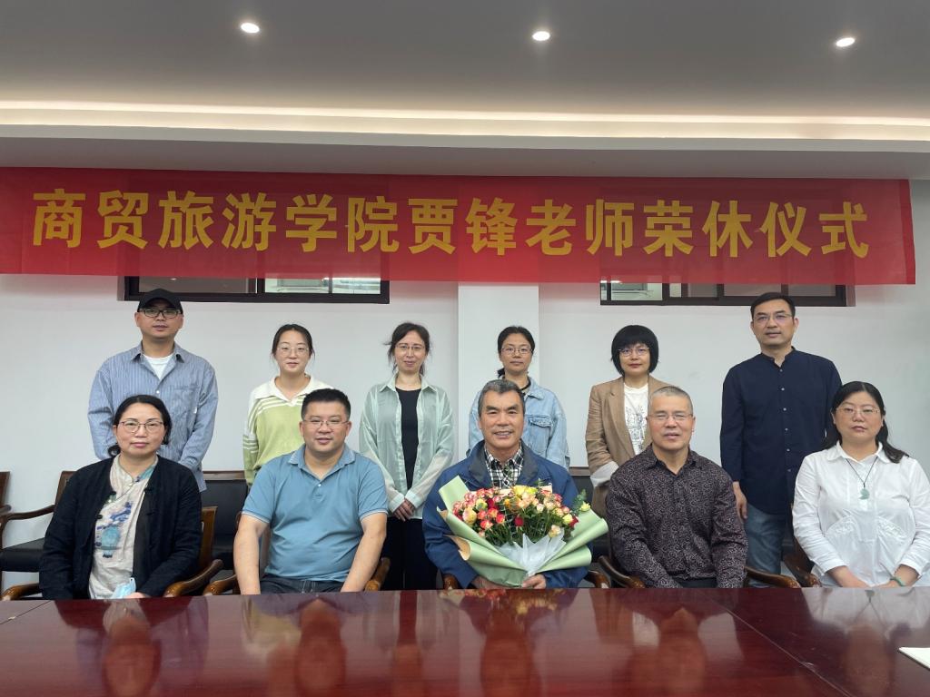 5月22日上午,党总支副书记周佳良,副经理袁江军,分工会主席夏昌静和智慧旅游专业组全体教师齐聚一堂,在8318会议室为智慧旅游专业贾锋老师举办了简短而又隆重的荣休仪式,仪式由夏昌静主持。