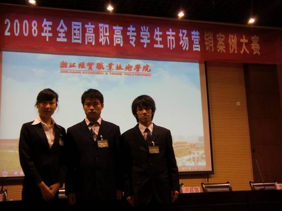 公司管理工程系营销专业于2008年11月至12月首次参加“E都市杯”2008年全国高职高专员工市场营销案例大赛,营销0721班的三名同学金鑫、沈俊嫣、谢洪在专业教师叶峥、向滨的指导下,经过与来自全国共139支高职高专院校代表队的激烈角逐,荣获团体优胜奖。