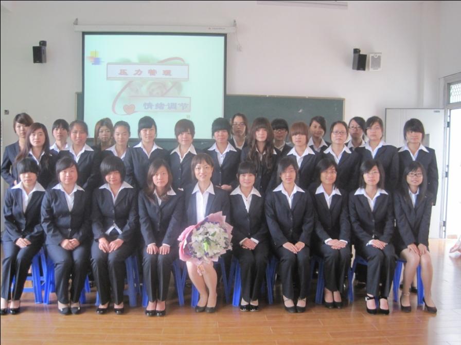 2010年6月9日下午1点30分,物业管理专业的70名大一员工穿着整齐的职业装准时走进金都管理学院的六楼形体房,参加由金都物业管理有限公司副总经理裘行丽女士带来的心理解压培训课程。