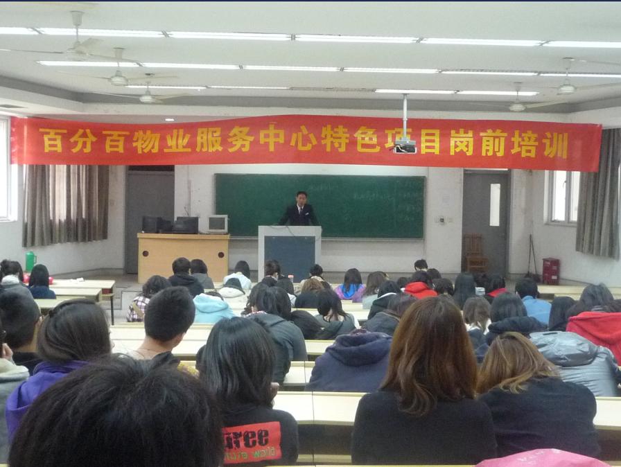 为了落实学院“工学结合”的培养方针,同时配合物业管理专业的班级特色项目建设,2010年4月7日下午,金都管理学院百分百物业服务中心特色项目的岗前培训在5102教室里正式启动。我们很荣幸地邀请到了金都集团梦琴湾佳苑物业服务中心秩序维护部的部长戴金辉为员工做了小区秩序维护工作的讲座。物业管理专业的全体教师、专业辅导员和150多名员工一同参加了本次培训。