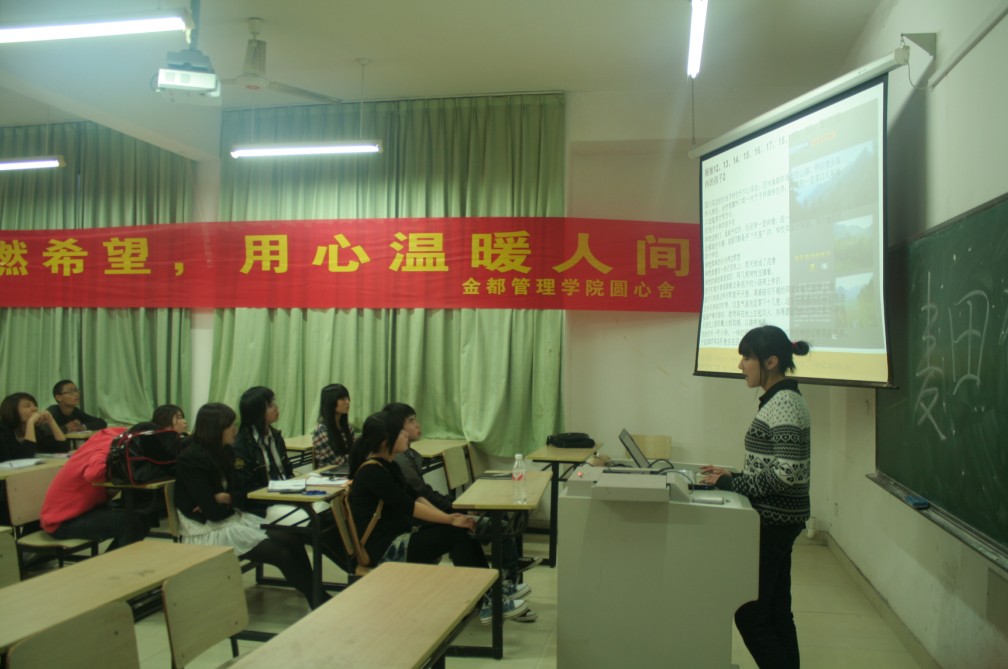2012年4月9日至13日,金都管理学院圆心舍于体育馆前面开展了为期一周的以“用爱点燃希望,用心温暖人间”为主题的纪实摄影展活动。本次活动是金都管理学院圆心舍首次与杭州职业技术学院校员工会联合主办,由杭州电子科技大学、中国麦田组织协办的首届摄影展活动。