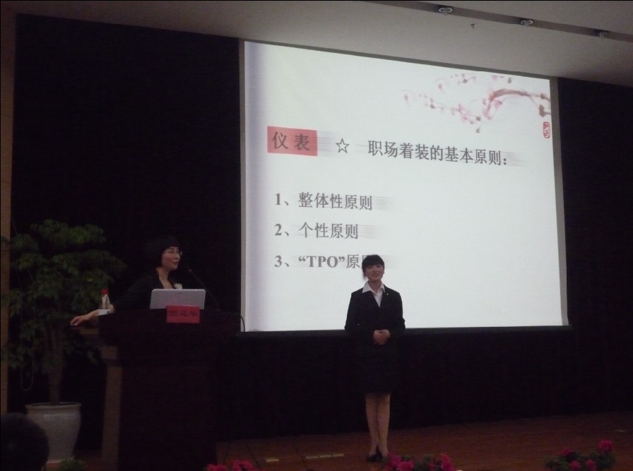 她用轻松幽默的话语营造出一个愉悦的氛围,与现场观众经常性的交流互动,帮助同学们掌握丰富的职场礼仪知识与要领。讲座虽结束了,但同学们却树立了保持良好的个人礼仪形象的信念。从个人内涵到外塑形象上,多下功夫。在今后走出校门的那一刻,就有了个人良好的职业礼仪形象而奠定基础。 |