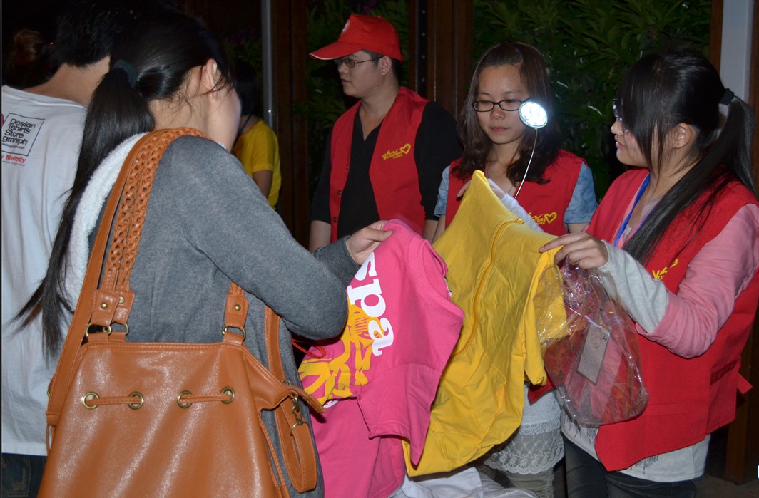 当晚六点,“圆心舍”服务小组在创意集市摆起了4个摊位,开始了义卖活动。个性T恤、打折书籍和一套套别致的拼图吸引了来来往往的老员工,当往来的人们知道是义卖的时候,纷纷给予了支持。当天活动持续到了九点,所得义卖善款都存入下沙网义工联盟的公益基金。