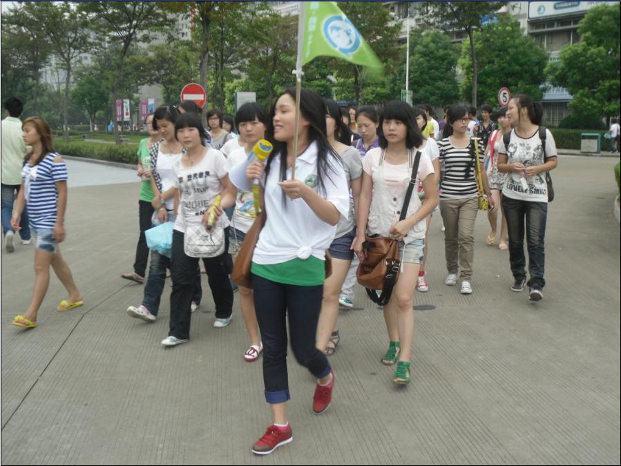 经过一个暑假的准备,旅游管理专业09级同学不仅从着装、道具等细节方面入手,体现“专职导游”的职业形象;还结合专业知识,经过几轮修改,共同制定了一条较专业的“校园一日游”游览线路:从学校正大门出发,沿着友嘉机电学院、新通国际学院、达利女装学院、金都管理学院一路到体育馆,详细介绍学院基本情况、发展前景,系院分布等情况。为了能顺利完成这次任务,不少同学主动提前到校,反复踩点、排练,和同学、老师讨论如何回答在途中“游客”的提问。