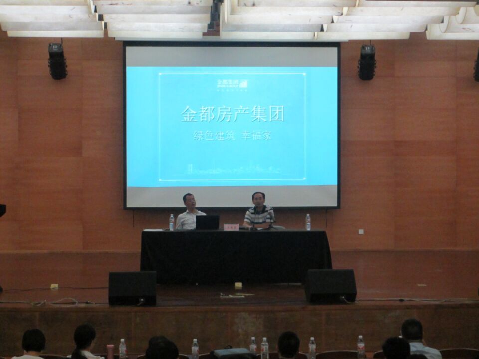 吴忠泉就金都集团和金都管理学院继续深入合作提出了五点希望:发展共研、资源共享、课程共建、实训共管、文化互融等,金都集团将为金都管理学院相关专业提供教学场所,派出优秀员工进行指导。并提出以“2+1+2”模式,建立电子商务互联网平台,全面推进深入合作。作为一个企业家,他希望同学们做到:今天想到的点子今天就要做,今天不做明天别人就已经做了,十个点子有一个做成了就很不错了,因此,年轻人不仅要有想法,更要有毅力。最后,吴主席言简意赅的介绍了金都集团及其项目,让在场的每一位,都深深的感受到金都集团雄厚的实力。