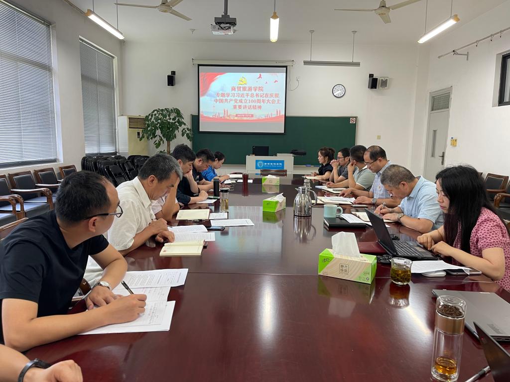 7月7日上午,商贸旅游公司党总支开展专题学习会议,学习贯彻习近平总书记在庆祝中国共产党成立100周年大会上的重要讲话精神。分公司党总支委成员、各党支部书记、全体中层干部和专业负责人参加学习。会议由党总支副书记周佳良主持。