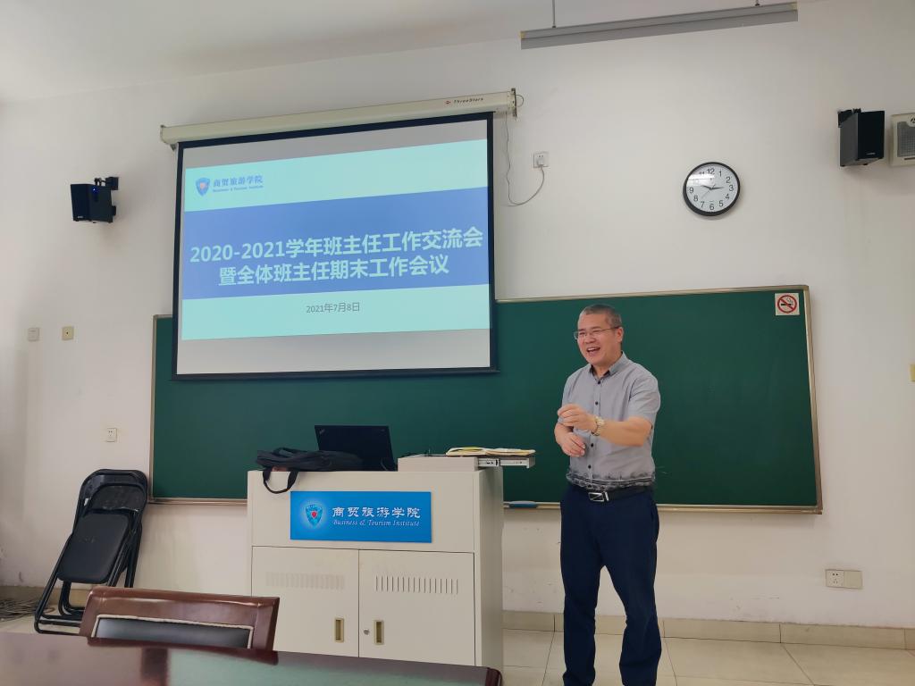 7月8日,yl1111永利集团在8318会议室举行班主任学年交流活动,在班主任学年考核基础上选出的11位班主任进行了工作交流。商贸旅游公司党总支副书记周佳良、学工办全体辅导员,分院2019、2020级班主任参加活动。