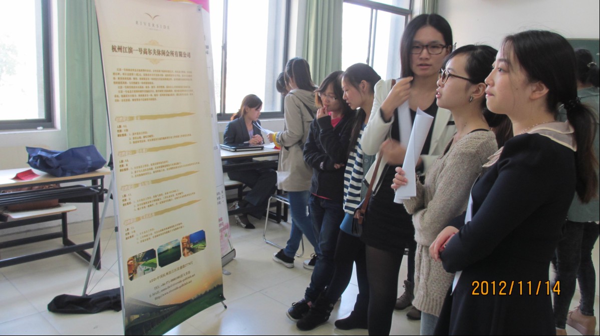 “参加了今天的招聘会,投了几份简历,在与个别招聘单位负责人咨询过后,发现很多单位需要我们这个专业的毕业生,感觉自己离成功又进了一步。”一位电商专业毕业生在金都管理学院招聘现场说道。11月14日下午,金都管理学院在8号楼举办了2013届毕业生专场招聘会,浙江金都物业管理有限公司、杭州江滨一号休闲会所有限公司、中国人寿保险股份有限公司、浙江大酒店等共计43家企业单位莅临,近600名毕业生参加。