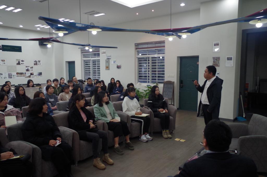 在活动中,汤涛学长以“我的青春这样走过”为题,用一幅幅照片展示他曾经在母校度过的“不安分”又充满青春激情的生活。并以此告诉在座学弟学妹“眼界决定高度”,珍惜当前的学习机会,谆谆言语,知微见著。而后他再次用照片分享了他工作时代和创业生活的辛苦与奋斗。最后汤涛学长以“人生每一阶段任务不同,去做本阶段该做的事”、“认真的对待每一个人,认真的去做每一件事”、“明白自己要什么,谨慎的去选择”三个建议作为自己分享的结语。他真情地告诉同学们,珍惜同学情谊,在员工生涯中多实践多尝试,学习道路既充满荆棘但也充满欢乐,生活场景既有趣但也处处陷阱,要学会思考,做出最适合自己的选择,同时在当下好好学习,提高自己的职业素养,培养自己的创业就业能力。