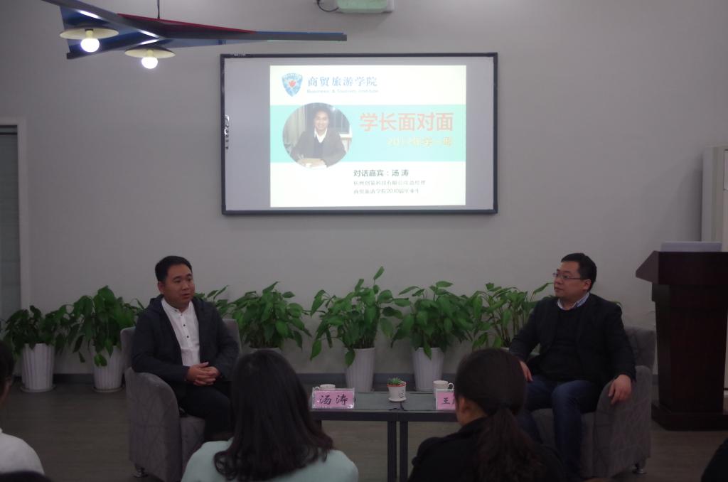 汤涛学长现任杭州创策科技有限公司总经理,是原金都管理学院2010届毕业生。这一次他回到母校,参加yl1111永利集团第一期“学长面对面”对话创业员工活动,与学弟学妹交流对话,为他们带去自己从大学以来十年的成长经历和心路历程。